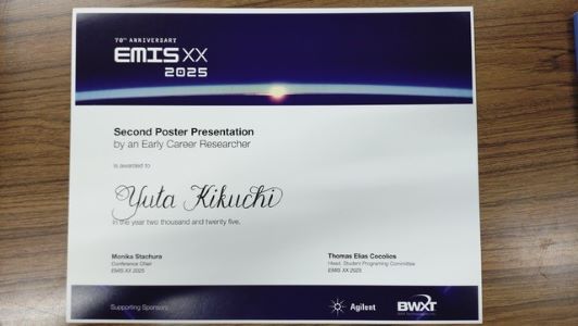 20th International Conference on Electromagnetic Isotope Separators and Related Topics (EMISXX) ポスター賞