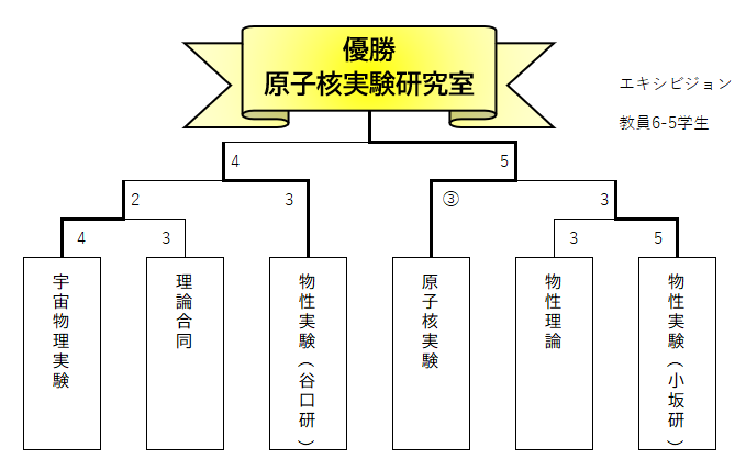 接戦の末、原子核実験研究室(山口・長江研究室)が優勝しました!参加者は70名を超え大盛況の大会となりました。敗戦の悔しさにグラウンドの土を集める姿も。